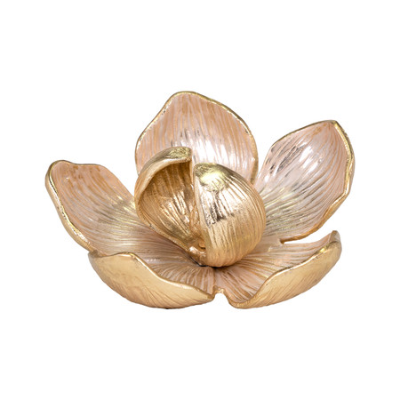 Transform your space with the stunning Alki Floral Small Sculpture, a masterpiece that captures the delicate beauty of nature in lustrous aluminum. Meticulously crafted to a precise 8 inches in length, 7 inches in width, and 5 inches in height, this exquisite sculpture features gracefully curved petals that unfold in an elegant dance, each surface reflecting light with a sophisticated golden warmth. Hand-crafted from premium aluminum, the Alki Flower marries durability with artistic excellence. Its refined 8-inch by 7-inch profile makes it an ideal accent piece for any surface, while the contemporary design seamlessly blends with both modern and traditional décor. Rising 5 inches from its base, the sculpture's organic form creates ever-changing shadows and highlights throughout the day, bringing dynamic visual interest to any room. Perfect as an accent piece for your coffee table, a striking addition to your bookshelf, or a sophisticated touch for your console, this versatile piece elevates any surface it graces. The luxurious gold finish adds a touch of opulence while maintaining a clean, contemporary aesthetic that works in any color scheme.