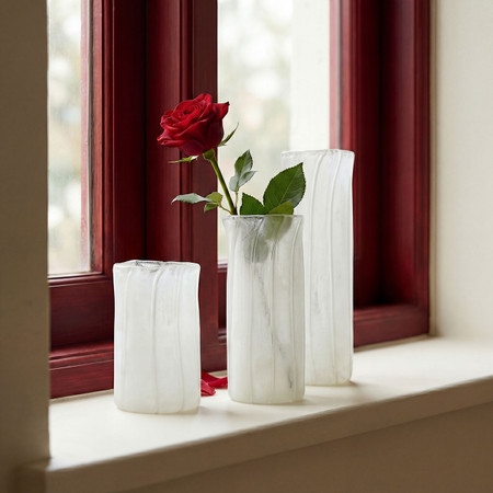Bring modern elegance into your home with the Lumia Small Vase. This decorative vase is crafted from frosted opaque art glass in a soft white finish, giving it a timeless and versatile look that enhances any space. Measuring 4L x 3W x 8H, its compact size makes it ideal for tabletops, shelves, and smaller arrangements while still making a stylish impression. The vase features vertical indented lines that create subtle texture and visual depth, complementing both contemporary and traditional décor styles. Perfect when filled with fresh flowers, greenery, or decorative stems, the Lumia Small Vase also stands beautifully on its own as an accent piece. Its neutral hue allows it to blend effortlessly into a variety of color schemes, while the handcrafted glass design highlights artisan quality. A refined choice for wholesale home décor, this piece offers trade professionals an easy way to add sophistication and character to interior designs. Whether styled singly, grouped with similar pieces, or paired with larger decorative vessels, the Lumia Small Vase elevates surfaces with understated charm and enduring appeal.