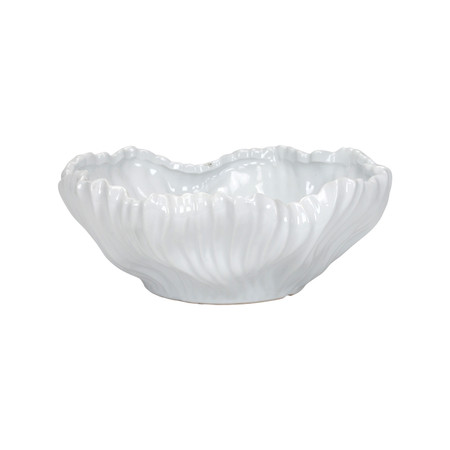 Porto White Ceramic Planter, 16"dia Crafted in high-quality ceramic, the Porto Planter is a stunning combination of abstract round shape and edge with a glossy white finish. Its unique textured pattern catches light and shadows, giving it a dynamic..…